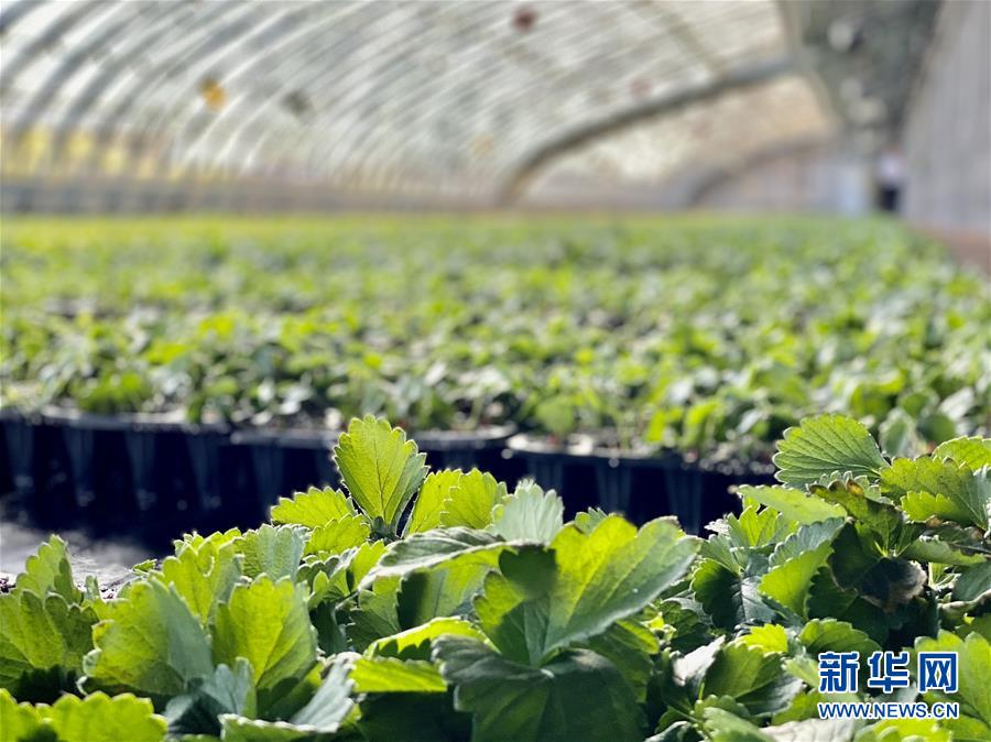 这是黑龙江省七台河市勃利县寒地有机草莓扶贫产业园大棚内栽植的草莓苗(7月28日摄)。 新华社记者 刘赫垚 摄