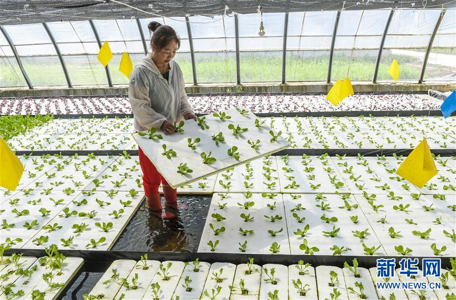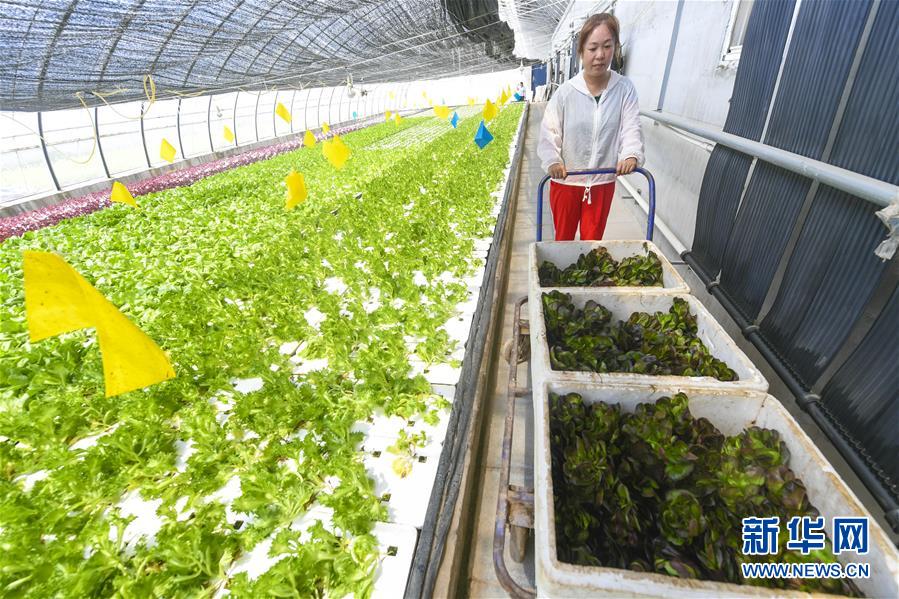 8月4日,河北省永清县龙虎庄乡一家农业科技公司的员工在打理水培蔬菜。 近年来,河北省永清县龙虎庄乡大力发展设施农业,不断优化水培蔬菜种植,不仅缩短生长周期,还具有绿色、高产优质等特点,成为农民增收新引擎。 新华社记者 李晓果 摄