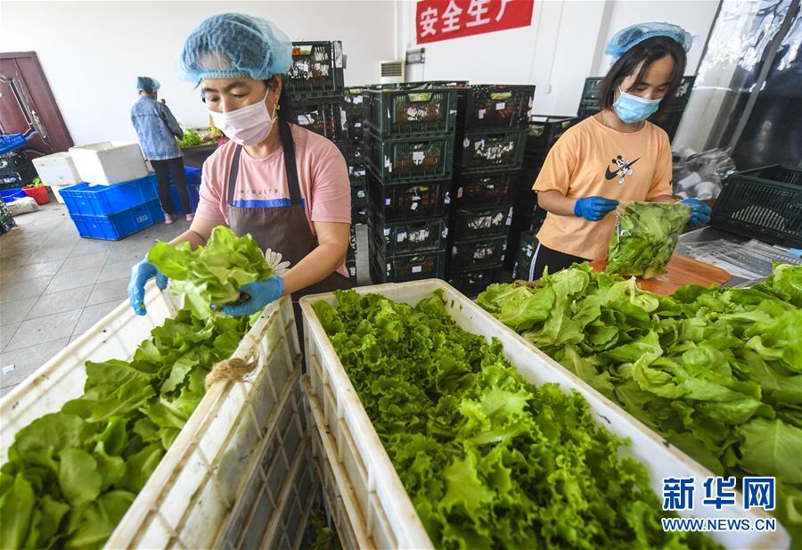 8月4日,河北省永清县龙虎庄乡一家农业科技公司的员工在把水培蔬菜装袋。 近年来,河北省永清县龙虎庄乡大力发展设施农业,不断优化水培蔬菜种植,不仅缩短生长周期,还具有绿色、高产优质等特点,成为农民增收新引擎。 新华社记者 李晓果 摄