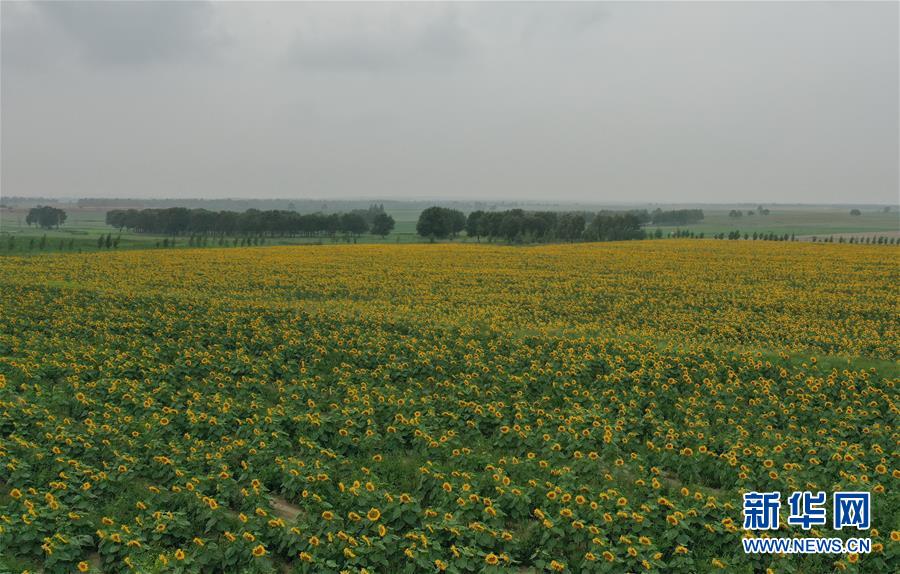 8月12日在尚义县三工地镇有德元村拍摄的旱作油葵(无人机照片)。新华社记者 杨世尧 摄
