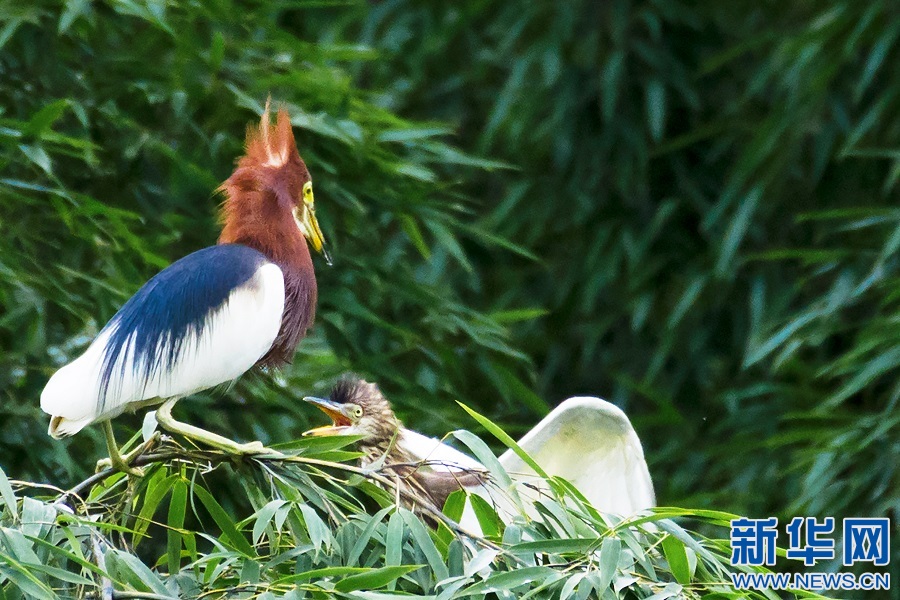 江西省芦溪县新泉乡优美的生态环境吸引了大量白鹭、池鹭前来繁衍栖息、安家落户。新华网发 贺少辉 摄