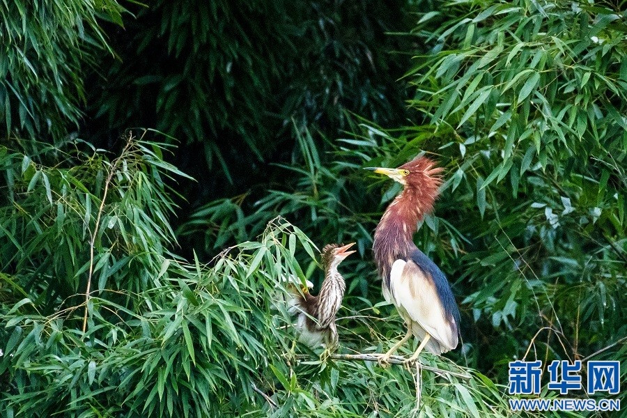 江西省芦溪县新泉乡优美的生态环境吸引了大量白鹭、池鹭前来繁衍栖息、安家落户。新华网发 贺少辉 摄