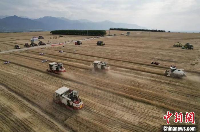 图为西安市长安区王曲街道、太乙宫街道和杜曲街道神禾塬小麦机收场景。 西安市农业农村局供图中新网西安1月3日电(李一璠)记者3日从西安市农业农村局获悉,2022年西安市圆满完成全年粮食生产目标任务,全年粮食总产量1...