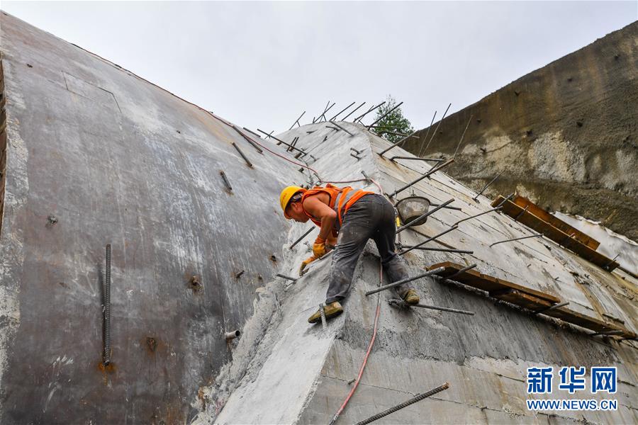 8月5日,中铁十一局工人在清远磁浮银盏温泉站施工作业。 目前,广东首条中低速磁浮线——清远磁浮旅游专线项目建设有序推进。广东清远磁浮旅游专线项目全长约38公里,分两期建设。首期全长8.014公里,将在9月份开始铺轨,预计在2020年底实现主体工程全面完工。 新华社记者 刘大伟 摄