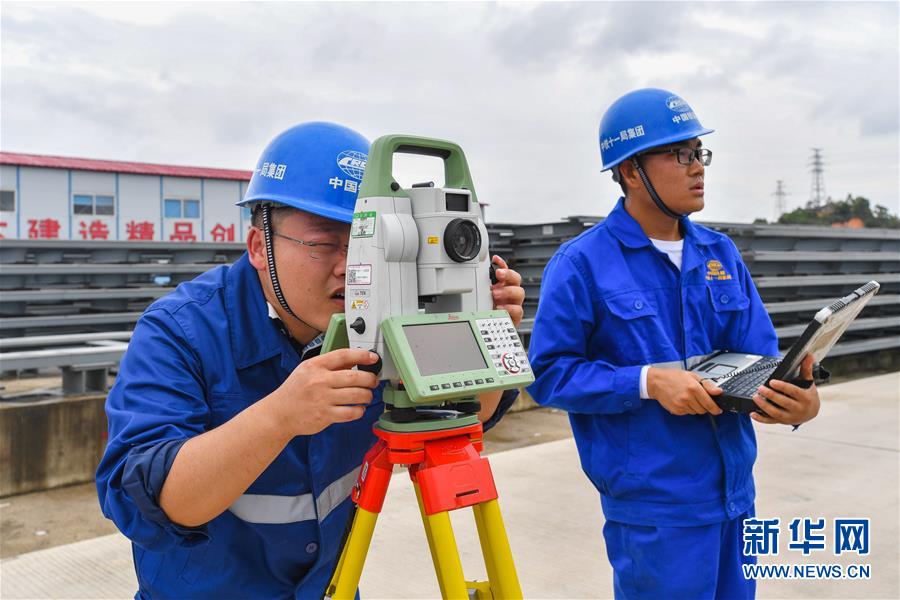 8月5日,中铁十一局技术人员在清远磁浮轨排基地对试验梁轨排进行精调。 目前,广东首条中低速磁浮线——清远磁浮旅游专线项目建设有序推进。广东清远磁浮旅游专线项目全长约38公里,分两期建设。首期全长8.014公里,将在9月份开始铺轨,预计在2020年底实现主体工程全面完工。 新华社记者 刘大伟 摄