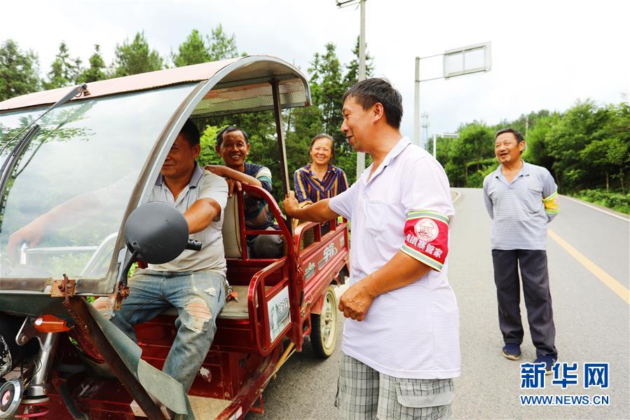 贵州湄潭县兴隆镇庙塘坝村大口坝寨“寨管家”安全员(前右)对村民进行安全引导(7月2日摄)。 “‘寨管家’服务村寨每一家,大事、小事、烦心事,尽管去找他。”这是贵州湄潭县西河镇石家寨村村民总结的一句顺口溜。为加强基层社会治理,更好服务群众,当地近年来组织乡贤、退役军人等担任村寨的“寨管家”。 新华社发(田景强 摄)