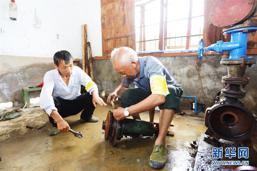 贵州湄潭县兴隆镇庙塘坝村大口坝寨“寨管家”水管员(右)在维修抽水泵(7月2日摄)。 “‘寨管家’服务村寨每一家,大事、小事、烦心事,尽管去找他。”这是贵州湄潭县西河镇石家寨村村民总结的一句顺口溜。为加强基层社会治理,更好服务群众,当地近年来组织乡贤、退役军人等担任村寨的“寨管家”。 新华社发(田景强 摄)