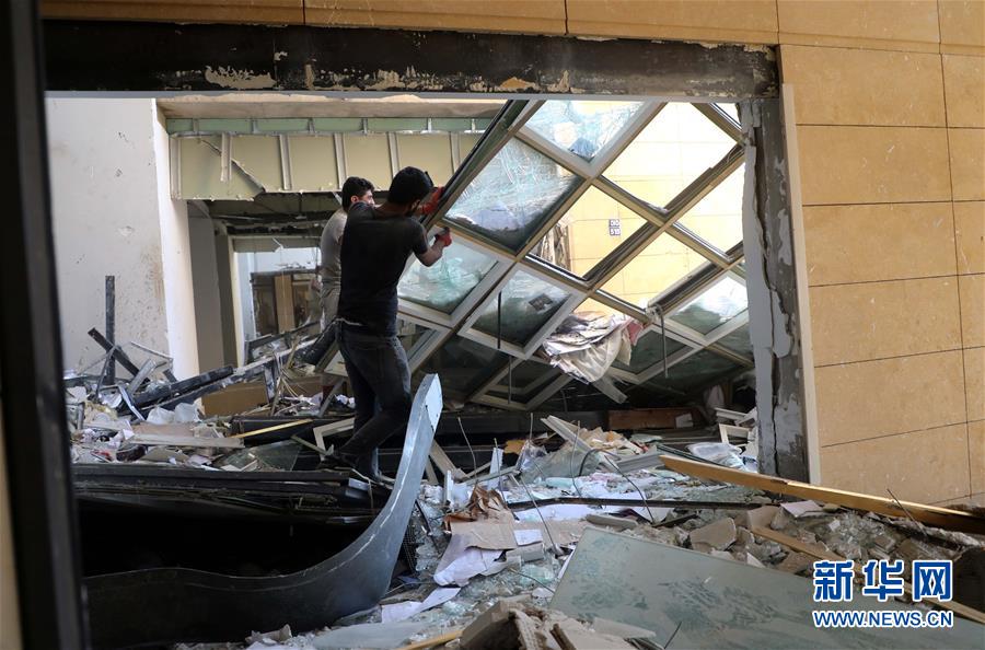 8月9日,在黎巴嫩首都贝鲁特,民众清理爆炸后的建筑物残骸。 黎巴嫩军方9日说,黎巴嫩首都贝鲁特港口区爆炸现场的搜救行动仍在继续,但找到生还者的希望越来越渺茫。 新华社发(比拉尔·贾维希摄)