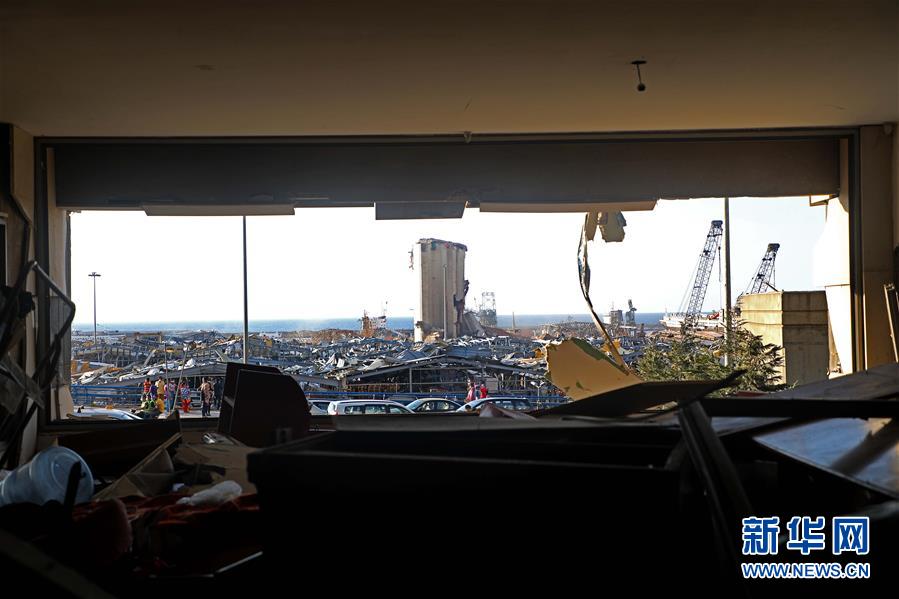 这是8月9日拍摄的爆炸过后的黎巴嫩贝鲁特港口区。 黎巴嫩军方9日说,黎巴嫩首都贝鲁特港口区爆炸现场的搜救行动仍在继续,但找到生还者的希望越来越渺茫。 新华社发(比拉尔·贾维希摄)