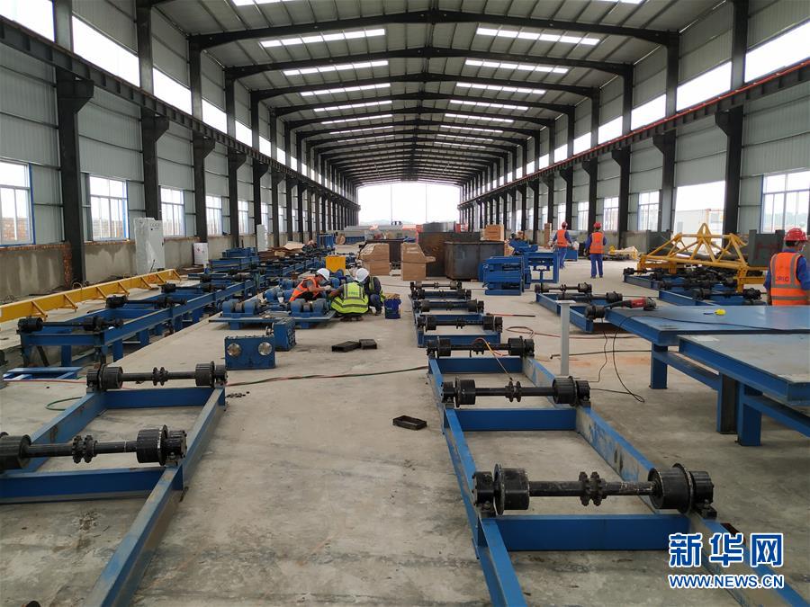 这是5月22日拍摄的孟加拉国帕德玛大桥铁路连接线项目轨枕生产厂房建设现场。新华社发
