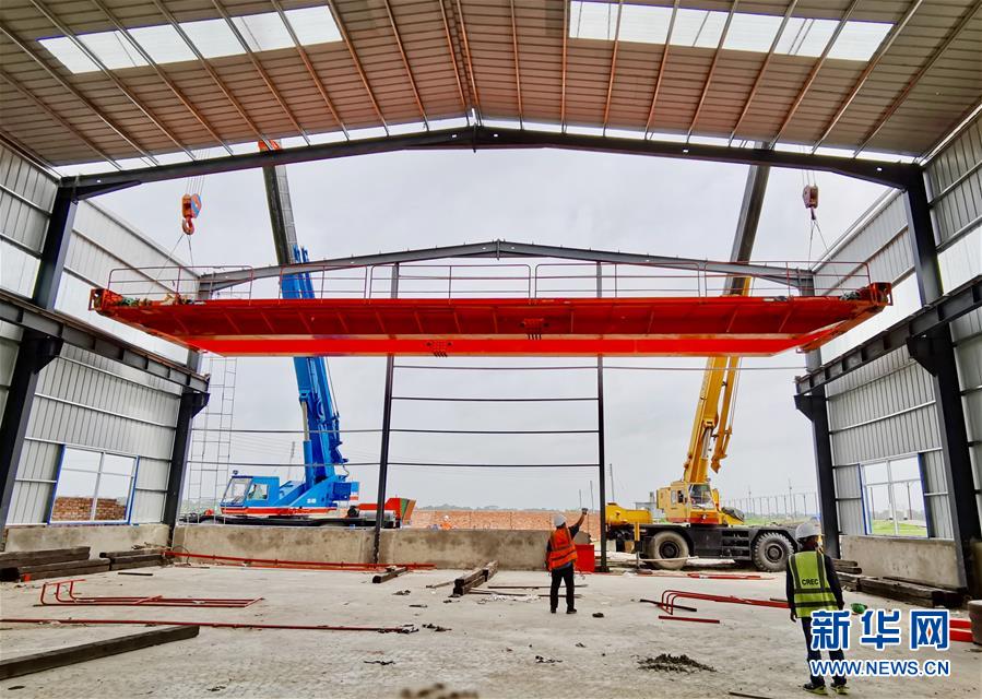 这是5月26日拍摄的孟加拉国帕德玛大桥铁路连接线项目轨枕生产厂房建设现场。新华社发