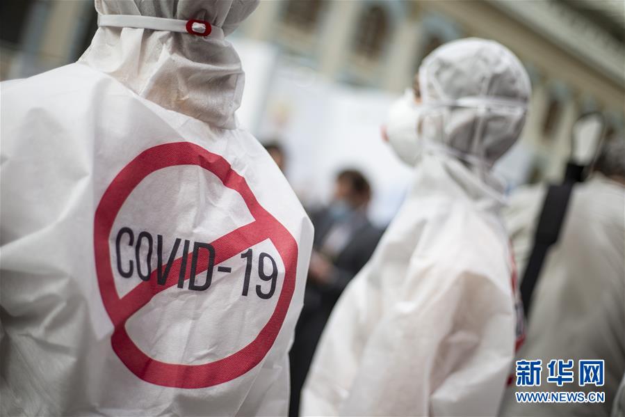 这是8月11日在俄罗斯首都莫斯科举行的“国民健康——俄罗斯繁盛之基”论坛上拍摄的身着防护服的工作人员。 当日,“国民健康——俄罗斯繁盛之基”论坛在莫斯科开幕,今年论坛的中心议题是在新挑战下如何保护和加强俄罗斯民众的健康。 新华社发(亚历山大摄)