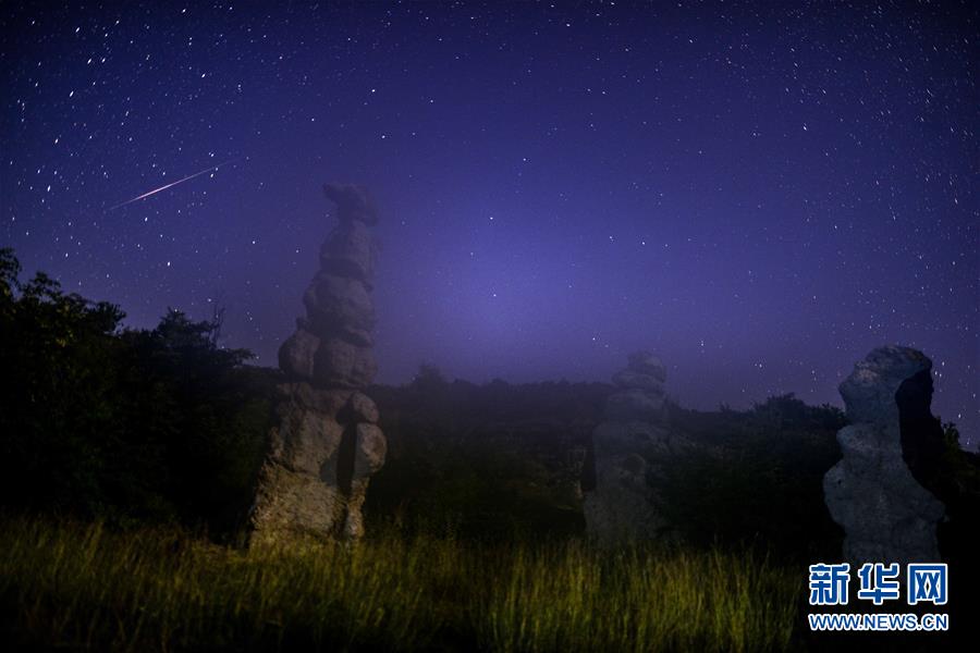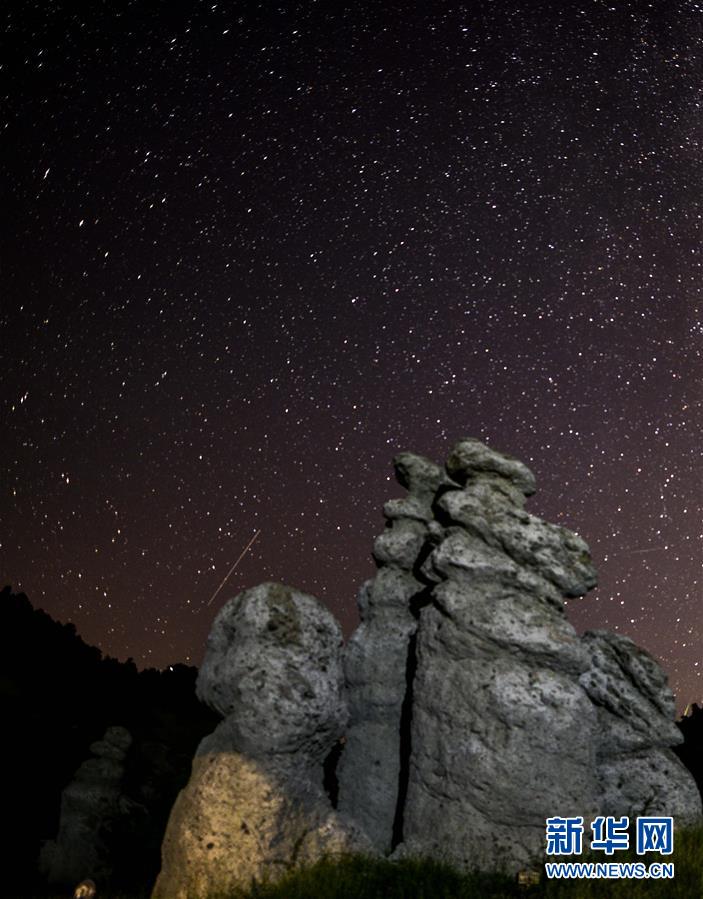 这是8月11日在北马其顿斯科普里附近拍摄的英仙座流星雨(长时间曝光照片)。 新华社发(托米斯拉夫·格奥尔基耶夫摄)