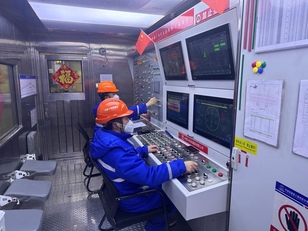在中铁十四局上海机场联络线2标段施工现场,盾构机长正操作盾构机不断掘进。受访者供图
