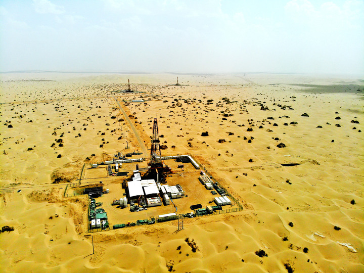 大漠深处的富满油田井架林立。(中国石油塔里木油田公司供图)
