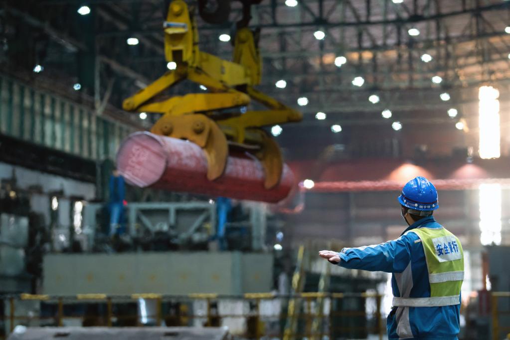 1月27日,位于安徽省马鞍山市的中国宝武马钢股份特钢公司生产线上,工人在生产线上忙碌。新华社发(罗继胜摄)